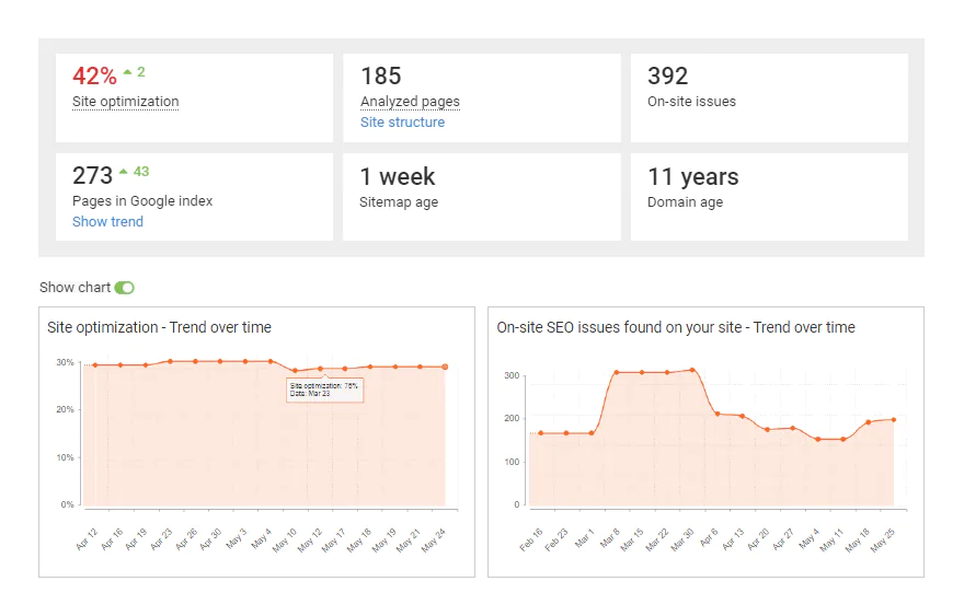 SEOmator provides a detailed analysis of your website's search engine optimization, including technical and on-page factors, content quality, and competitor analysis.